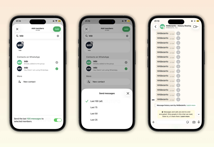 După cum au observat colegii de la WABetaInfo, Meta a lansat o versiune beta a aplicației WhatsApp pentru iOS prin intermediul TestFlight, care permite membrilor unui chat de grup să aleagă dacă doresc să partajeze istoricul recent al conversațiilor cu un nou membru pe care tocmai l-au adăugat („până la 100 de mesaje recente partajate în grup în ultimele 14 zile”).