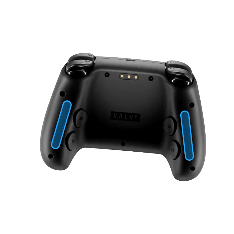• Grip Buttons – patru butoane programabile sunt incluse pe partea din spate a noului Steam Controller: utilizatorul poate decide cum să le folosească, păstrând în același timp degetele mari pe trackpad-uri sau pe stick-urile analogice.