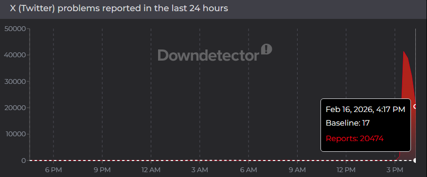 Rețeaua de socializare X, deținută de Elon Musk, este nefuncțională, inclusiv în România. Peste 40.000 de raportări pe platforma Downdetector.com prezintă faptul că rețeaua de socializare este nefuncțională. TechRadar titrează că acesta este cel mai mare picaj din noiembrie 2025 încoace.