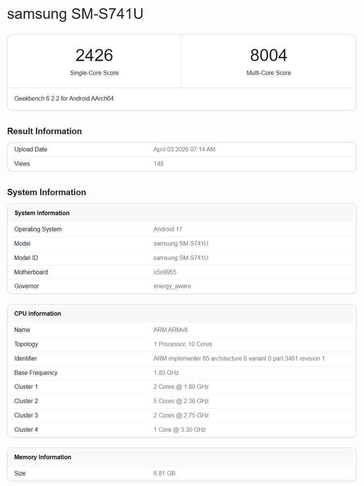 Datele apărute indică utilizarea chipsetului Exynos 2500 pe modelul FE, în locul mai noului Exynos 2600.