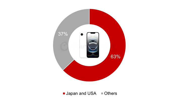SUA și Japonia au fost piețele cheie pentru vânzările de iPhone 16e. Cele două piețe au contribuit la peste 60% din volumele de 16e în 2025. În Japonia, a existat o preferință pentru telefoanele compacte, iar Apple a reușit să vizeze cu succes consumatorii tineri și de nivel mediu de acolo. În SUA, modelul 16e s-a descurcat bine în segmentul preplătit, oferind consumatorilor un dispozitiv solid în segmentul de preț de 500-700 USD.