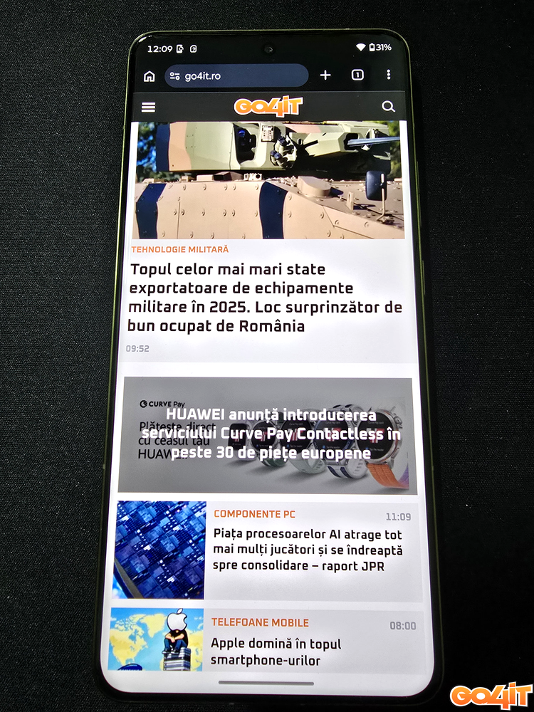 Bineînțeles, nu puteau lipsi difuzoarele stereo, cu suport Dolby Atmos, și nici suportul pentru standardele moderne de conectivitate precum Wi-Fi 7 sau Bluetooth 6. Senzorul de amprente, implementat sub ecran, este de tip ultrasonic, cu un timp de recunoaștere foarte rapid. Nu în ultimul rând, portul de încărcare USB Type-C este de tip 3.1 Gen2, asigurând o viteză rapidă de transfer a datelor, precum și posibilitatea de a “scoate” semnal video.