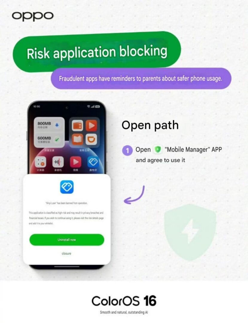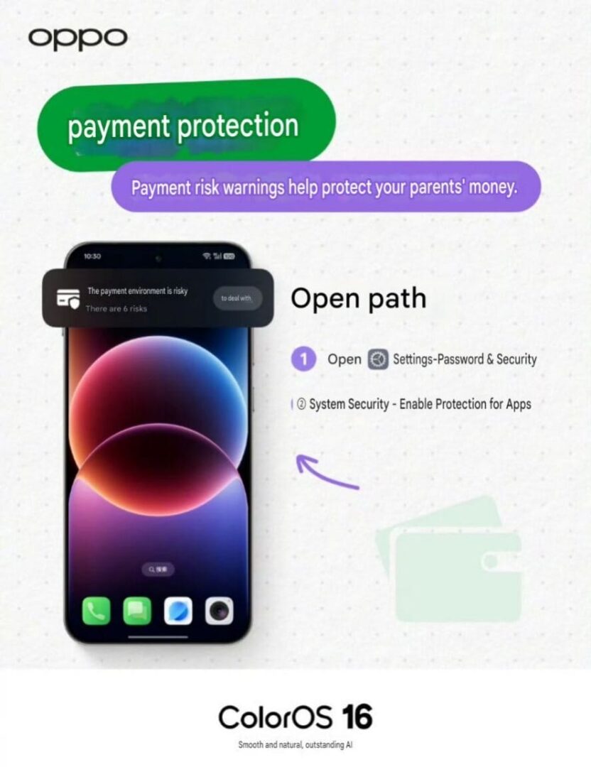 Pe lângă actualizarea funcției AI de prevenire a fraudelor, OPPO a prezentat și un ghid de configurare pentru instrumentele de securitate disponibile în ColorOS.