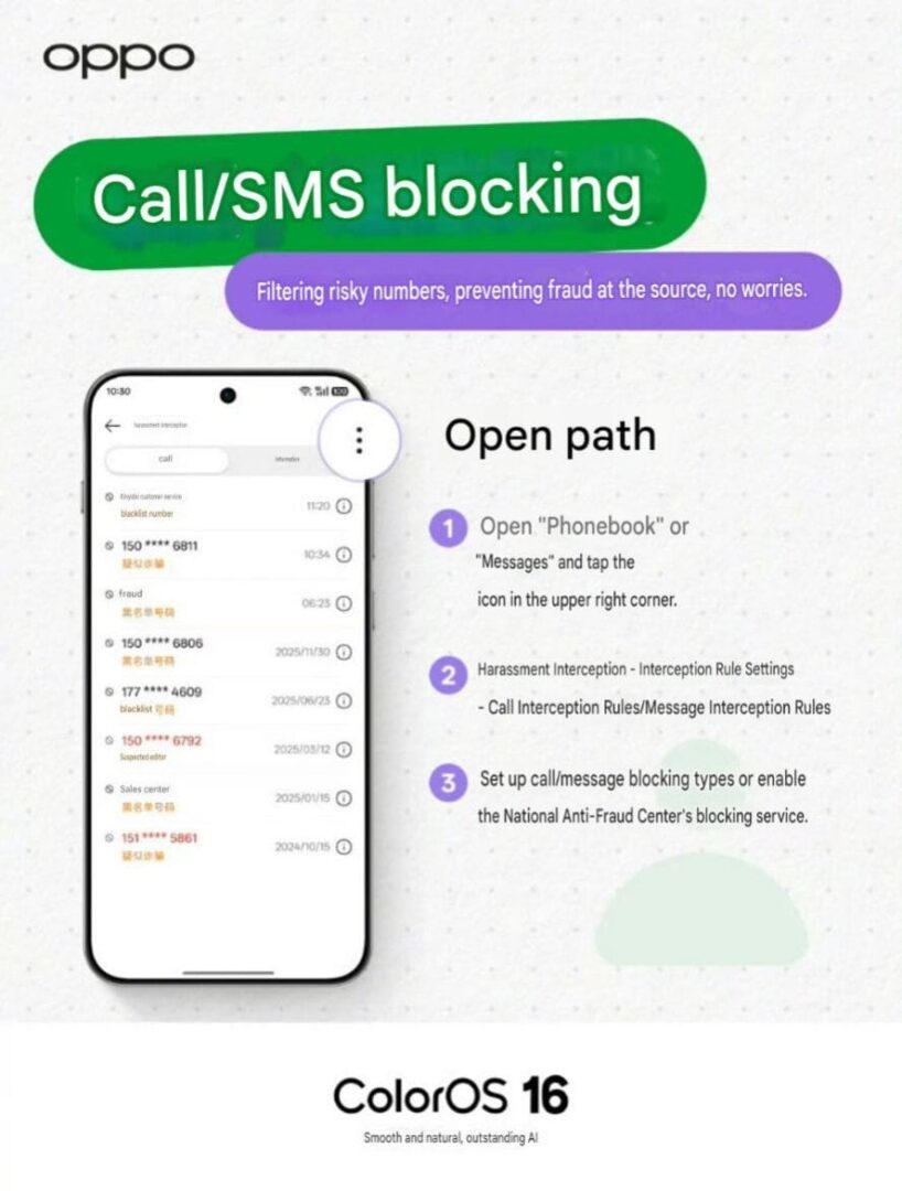 OPPO a început distribuirea actualizării de securitate pentru luna martie 2026 pentru dispozitivele eligibile. Noua versiune aduce îmbunătățiri generale de securitate, dar și o actualizare importantă a funcției de protecție împotriva apelurilor frauduloase, bazată pe inteligență artificială.