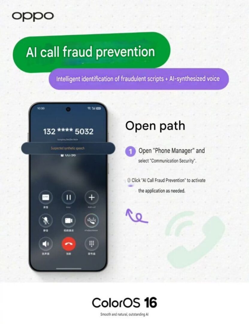 Actualizarea face parte din cea mai recentă versiune a sistemului ColorOS și urmărește să ajute utilizatorii să identifice mai rapid tentativele de fraudă telefonică.