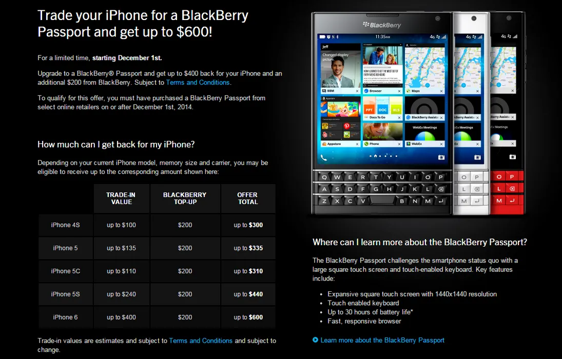 BlackBerry oferă program trade-up pentru Passport în America