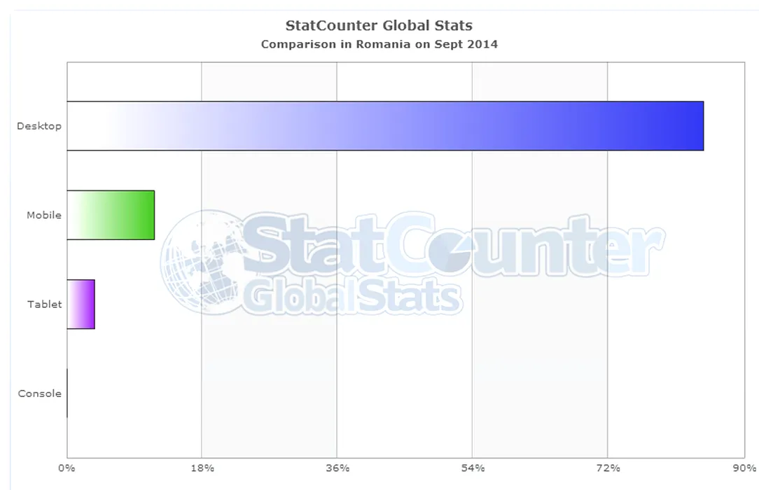 Cota de piaţă a sistemelor de operare mobile în România – septembrie 2014. Diferenţa dintre Android şi iOS creşte