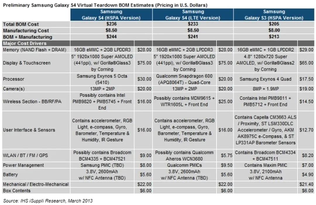 Galaxy S 4 – care e costul de fabricaţie şi ce umflă preţul final din magazin