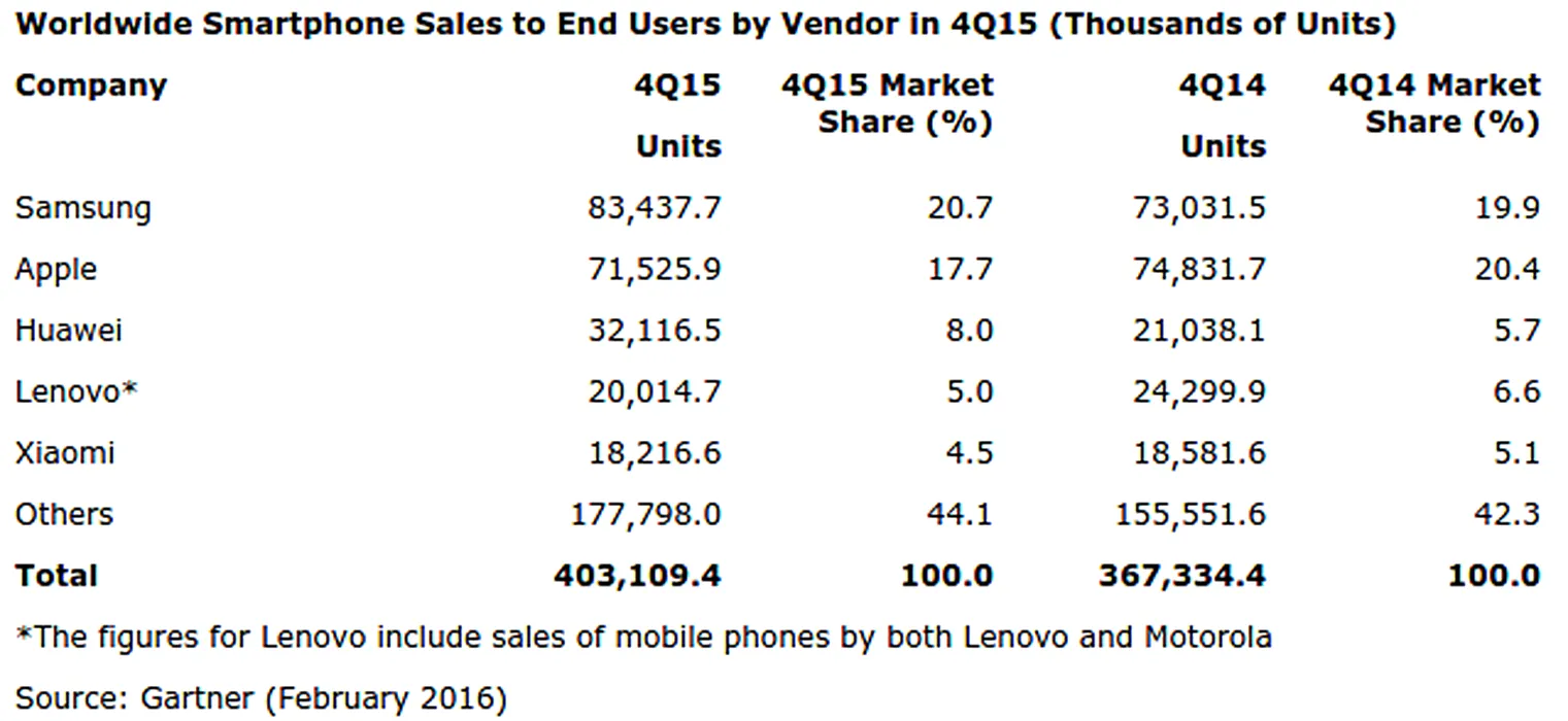 Gartner: Samsung şi-a menţinut poziţia de lider pe piaţa de smartphone-uri în 2015