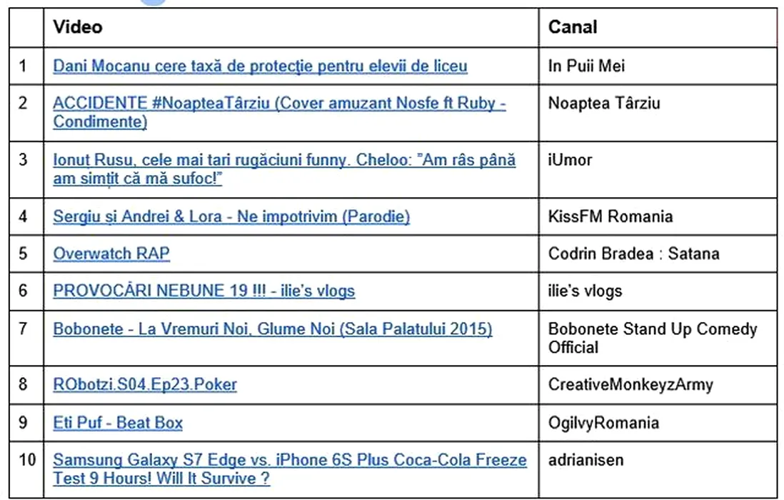 Iată la ce s-au uitat românii pe YouTube în 2016: În puii mei, Carla’s Dreams şi Adele sunt în top