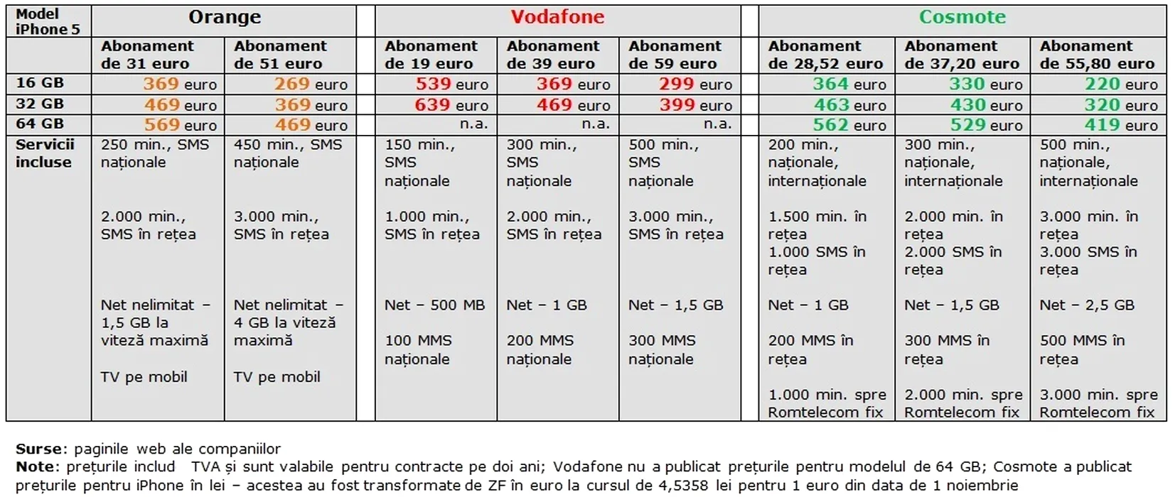 iPhone 5 în România – preţuri şi abonamente la Cosmote, Orange şi Vodafone