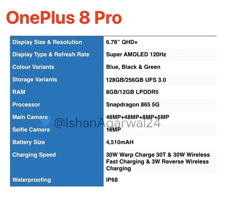 OnePlus 8 şi 8 Pro: specificaţii hardware aproape complete înainte de iminenta lansare