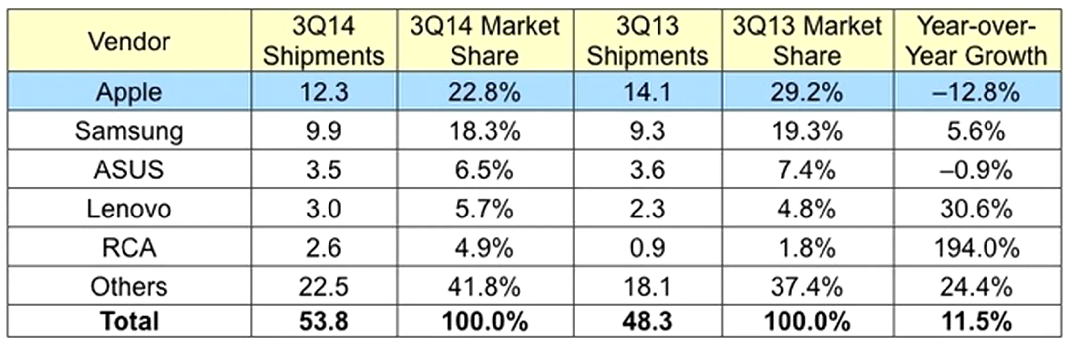 Piaţa tabletelor în trimestrul trei: Apple pierde teren, Lenovo şi producătorii accesibili câştigă