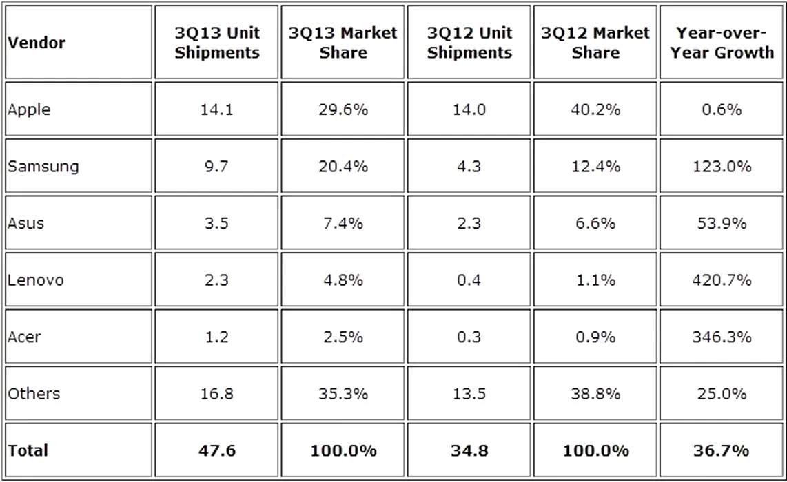 Piaţa tabletelor în trimestrul trei: cota Apple scade, producătorii de modele Android cresc vizibil