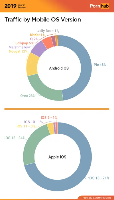 PornHub a publicat topul celor mai populare versiuni de Android şi iOS în 2019