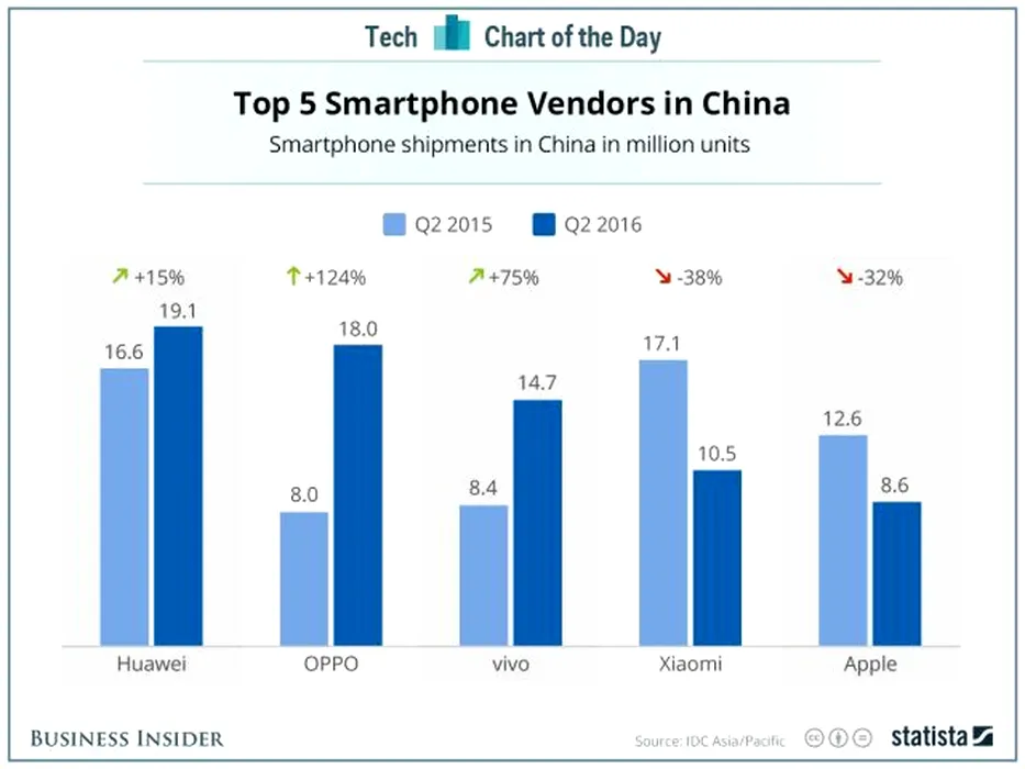 Vânzările de smartphone-uri ale „Apple din China” s-au prăbuşit în trimestrul trecut