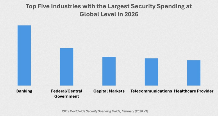 Sectorul bancar, administrațiile centrale, piețele de capital, telecomunicațiile și furnizorii de servicii medicale vor genera împreună peste o treime din cheltuielile globale pentru securitate în 2026.